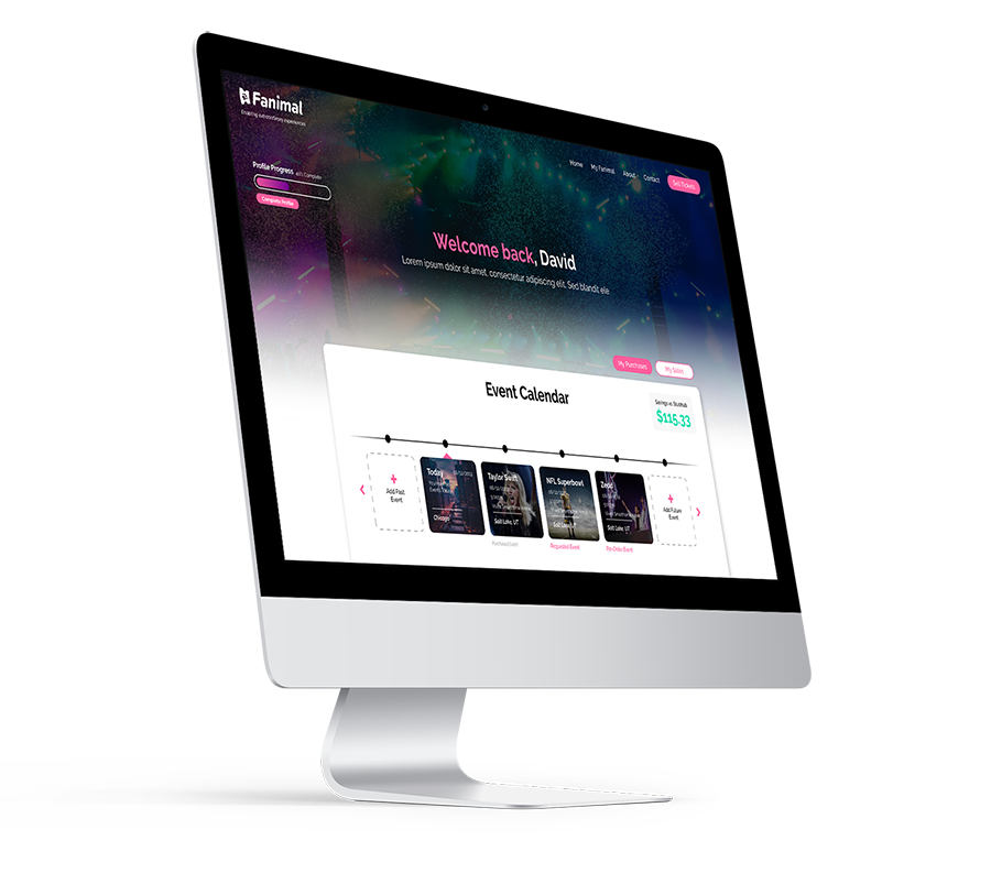 The Fanimal profile dashboard needed to stand out from the other pages. I added a large splash of color to the top of the page and large imagery for the upcoming event thumbnails. I used the Fanimal pink as much as possible to enhance the pink aesthetic to the brand.
